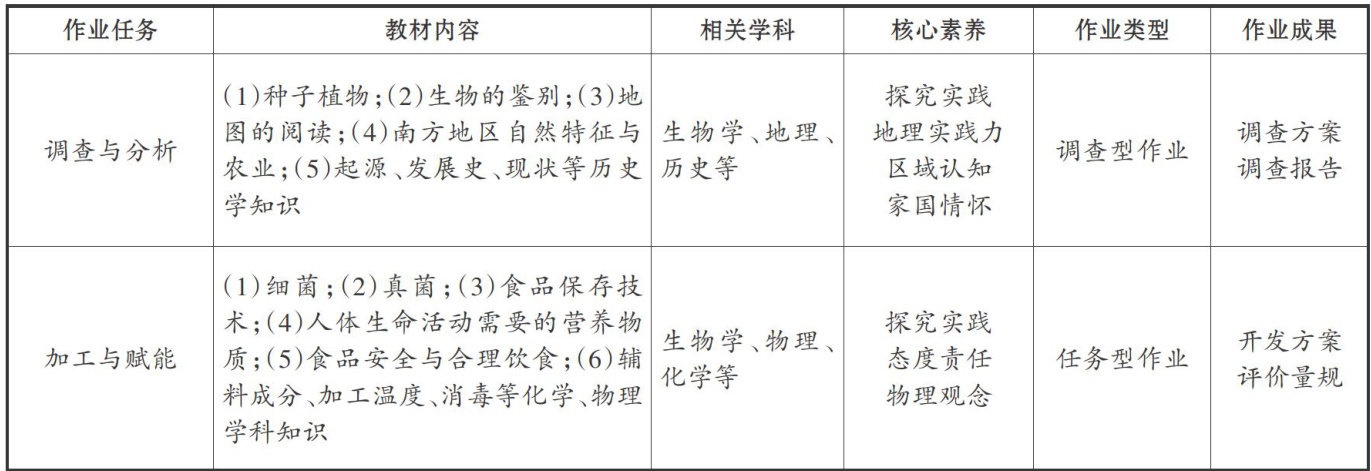 [摘要]文章结合课程标准要求和教材内容,以“探秘百色芒果产品加工”为跨学科主题,设计调查型与任务型两种实践类作业,引导学生在作业完成过程中为家乡芒果产业发展赋能,同时培养解决真实问题的能力,深化对芒果产业持续绿色发展的认知,同步落实家国情怀培育、职业规划引导与综合素养提升的育人目标。