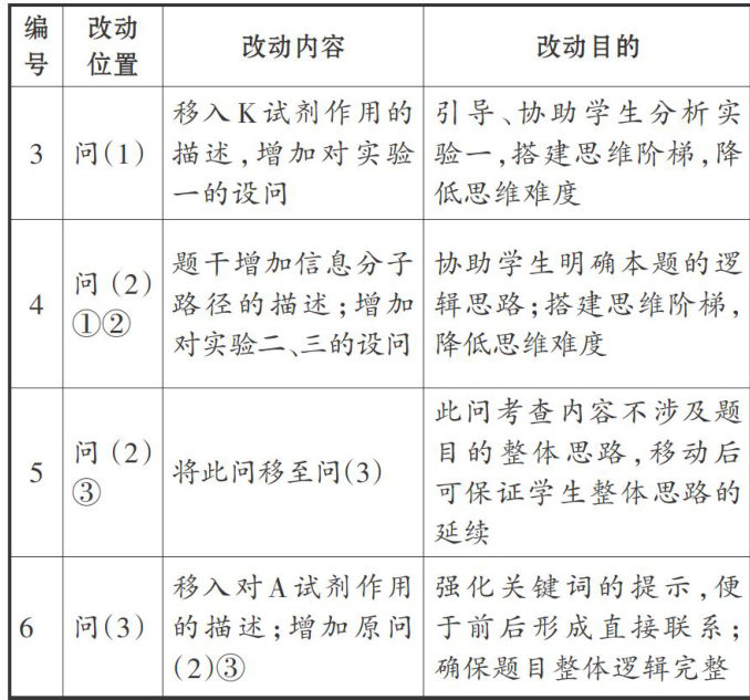 [摘要]对2024年广东省选择性考试第19题拆解分析发现,其难度主要源于设问综合性强且直接信息铺陈不足、隐性基础原理挖掘难度大、与科研思路深度关联。基于此,对该试题进行针对性改编,通过增加关键信息引导、搭建阶梯式思维支架,使其适配学生的阶段性认知能力,进而提升试题的应用价值。