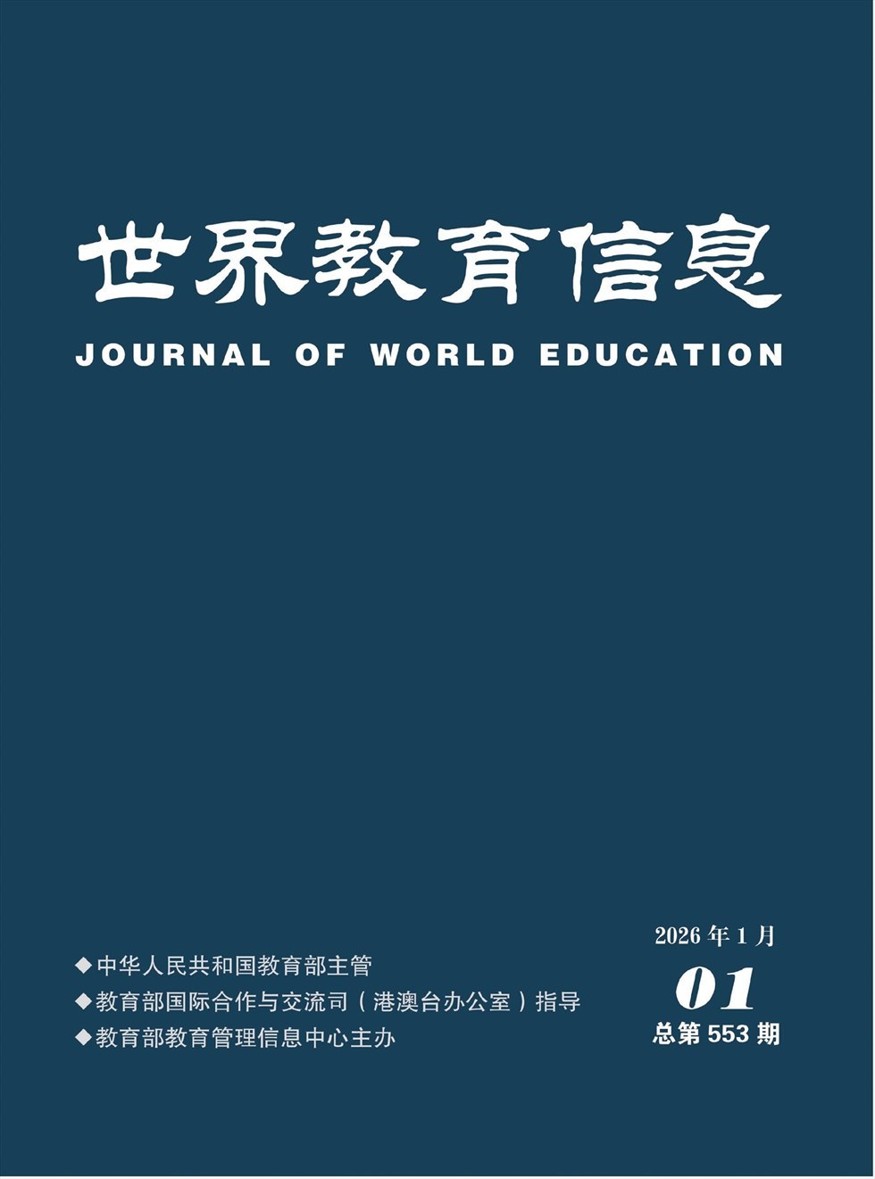《世界教育信息》月刊以报道外国和我国港澳台地区教育信息为主,内容包括我国驻外使(领)馆教育处(组)的第一手调研报告,国内外作者的大量优秀来稿,联合国教科文组织公布的最新文件、教育统计数据,各国教育报刊文摘精粹,赴外教育考察报告,原版外文译稿,交流学者、留学生特稿和名人访谈等。是一本充分反映国内外教育发展的最新动态和趋势、服务于各级各类教育机构的综合性国家级教育期刊。