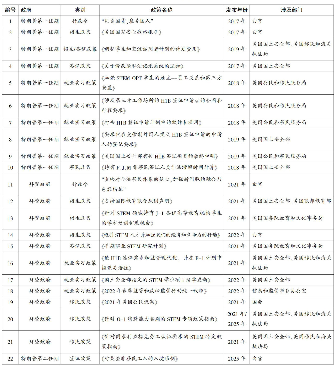 摘要:文章系统分析了2017—2025年特朗普第一任期、拜登政府与特朗普第二任期美国STEM领域留学政策的变迁与影响。特朗普第一任期以“美国优先"为原则,收紧签证政策、提高费用、加强审查,并对中国STEM学生实施针对性限制。拜登政府虽放宽部分政策,如优化签证流程、扩大专业实习签证适用范围、增加STEM课程列表、放宽H1B签证限制并提供绿卡便利,但延续了对华核心限制。2025年特朗普再次执政后,政策趋严,尤其是针对中国“关键领域"学生的签证限制。政策调整对留学生流动产生明显影响:特朗普时期新生入学率大幅下降,拜登时期申请量回升,但中国STEM学生仍面临高拒签率。专业实习签证参与人数增加,主要受STEM延期政策推动。展望未来,美国虽需全球STEM人才以应对劳动力短缺,但对华政策预计继续趋紧。
