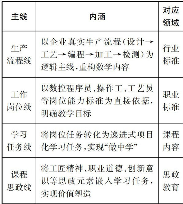 摘要:“四线融合”是指将数控加工领域的生产流程线、工作岗位线、学习任务线、课程思政线四条主线有机整合。实践中,以企业典型项目实现生产流程线与学习任务线的贯通,以校企实训基地推进生产流程线与工作岗位线的对接,以“六步教学法"确保学习任务线与课程思政线的协同,岗课融通,德技并修,促进“四线融合"的落地;同时,三维协同,逐级进阶,确保“四线融合”的实效。