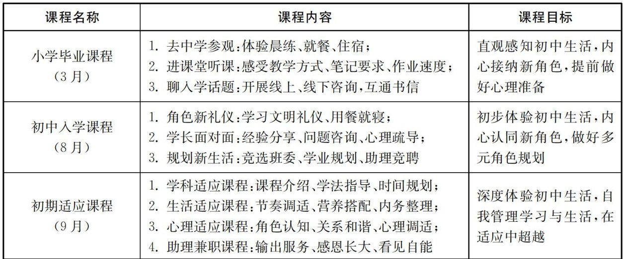 摘要:江苏省常州市河海实验学校基于学制转型的发展需求和小初衔接的问题探讨,充分挖掘九年一贯制学校系统育人的独特优势,以课程的设计与实施为重要载体,通过开设小学毕业课程、初中入学课程、初期适应课程等,引导学生走进小初衔接的正中央,推进小初自然衔接,促进中小学生知识、精神和情感的交汇共生。