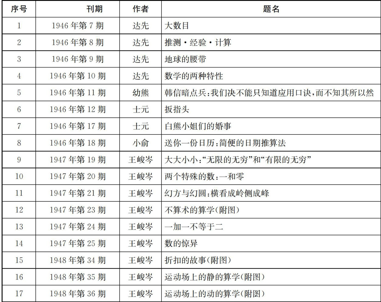 摘要:叶圣陶先生重视数学的价值。他不仅在教育岗位上积极践行数学科普,更是在出版工作中亲自(组织)编写数学科普材料和文章以及著作。他与夏丐尊、丰子恺、刘薰宇等合作创办了《中学生》新少年》等青少年杂志,并且特别重视数学领域,关注数学科普文章。他与吴研因、王志瑞等合作撰写了《数数算算》《算术游戏》《算术竞赛会》等数学科普著作。这三本著作对教育的启示有:融入故事、游戏和竞赛,激发学习兴趣;渗透数学思想方法,留下思考空间;促进内容跨界融合,提升综合素养;在注重趣味性的同时,兼顾严谨性。