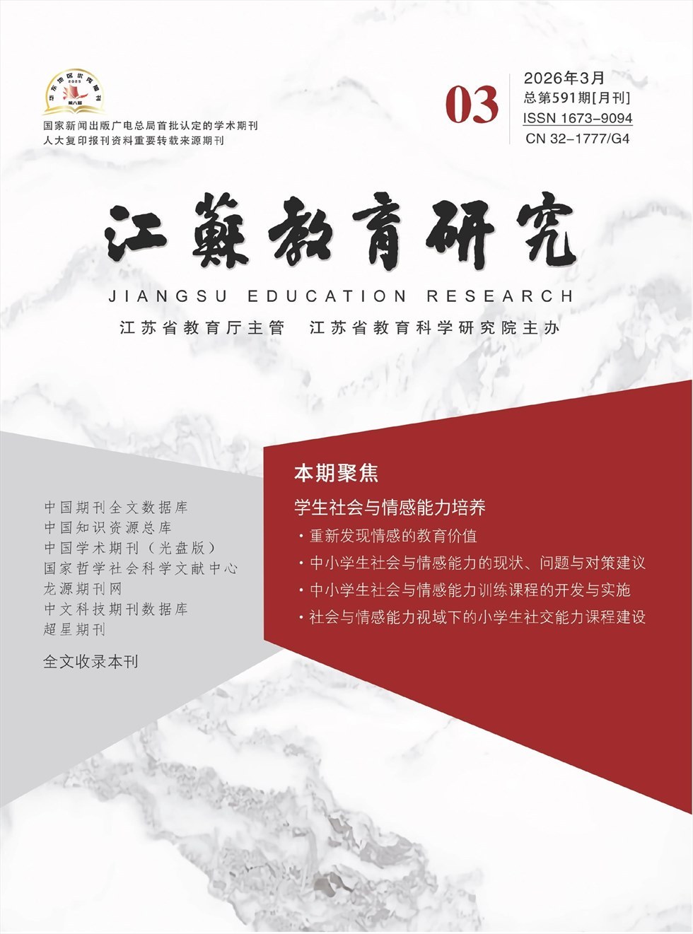《江苏教育研究》杂志社成立于2007年,是江苏省教育科学研究院的下辖部门,主要承担编辑、出版、宣传、科研等职能。