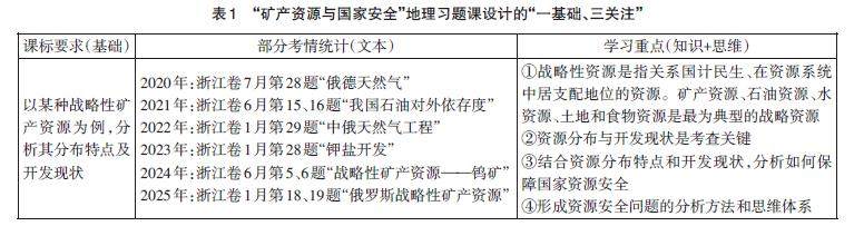 摘 要:地理核心素养的培育,需要重视学生地理学习过程的思维发展。地理课堂教学应以学生思维发展为对象,深入研究从学习过程到结果的思维表现,并积极开展思维结构评价。本文以“矿产资源与国家安全”为例,尝试在地理习题课中建立“感知·关联·迁移”的思维进阶路径,设计“审题—说题—破题—解题—命题”的教学活动流程,引导学生从浅层信息加工转向深层理解应用,形成解决复杂问题的高阶地理思维。 关键词:思维进阶;地