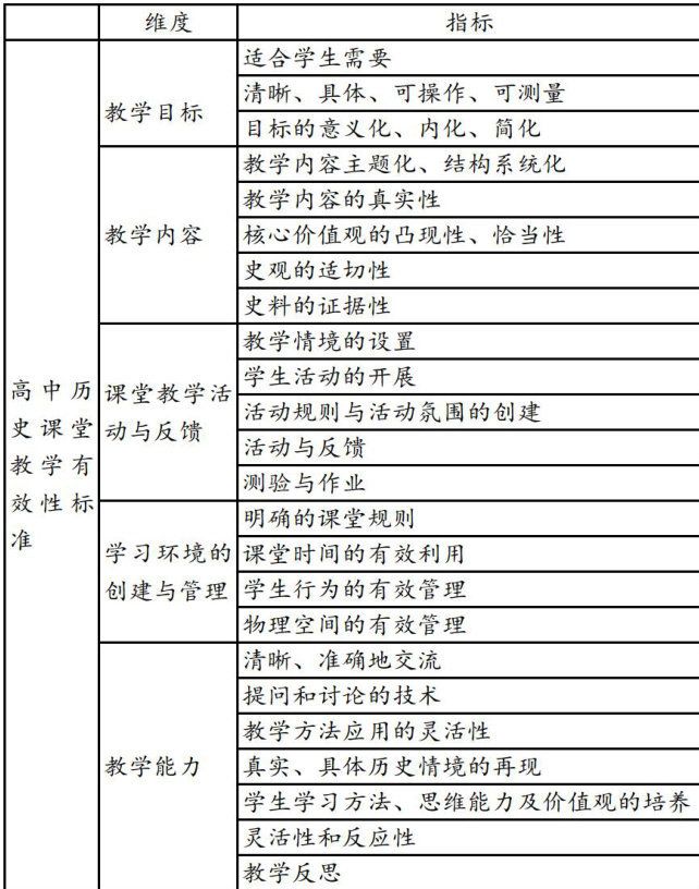 摘要:历史教育功能的实现借助于历史学科核心素养的落实,探讨新一轮基础教育改革下历史课堂教学有效性标准的转变,为教师在新课程背景下思考、反思课堂教学提供一个支架。通过教学案例,从教学内容的主题化、结构的系统化;教学内容的真实性;核心价值观的凸显、恰当性;史观的适切性;史料的证据性等维度,阐述历史课堂教学内容有效性标准,并制定课堂教学内容观察量表。