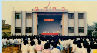 △1987年云浮中学开学典礼 △1990年云浮中学旧校门 创建于1914年11月,前身为云浮县立中学,原址设在原泷东书院。1942年,校址定于云城区春岗山下,背倚青山翠黛,前揽蟠龙天湖,文脉绵延至今已逾110载。云中以百余年校史沉淀深厚底蕴,更以硬核实力赢得认可:既是云浮市首批重点中学,又先后获评广东省一级学校、广东省国家级示范性高中。 2003年,云浮中学在云城区丰收大风桐兴建新校