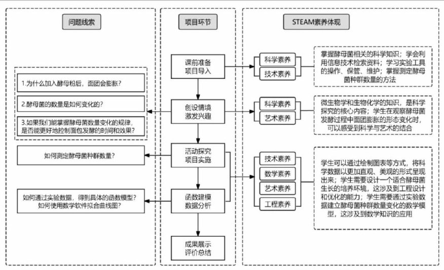 摘要:项目式学习是一种以真实情境为背景的学习方式,它基于现实主题,旨在让学生通过跨学科综合研究解决实际问题.以“酵母菌种群数量变化研究”为主线,综合数学学科和生物学科的内容,设计出“课前准备,项目导入”“创设情境、激发兴趣”“活动探究,项目实施”“函数建模、数据分析”“成果展示,评价总结”五个阶段,以增强学生解决现实问题的能力为基点,引导学生开展深度学习,进而促进学生全面进步.关键词:STEAM理念;指数函数;项目式学习