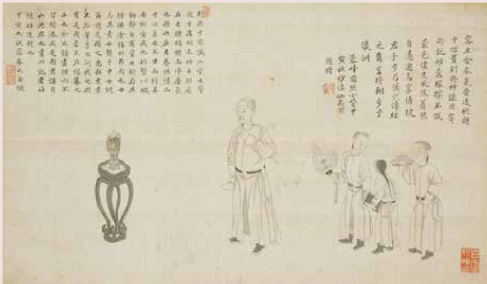[摘要]乾隆五十九年(1794),第四次礼闱失利南归的刘恕邀请画家沈月山、翟大坤依据其诗文创作肖像和书斋图,以寄托自己35岁的人生随想,其中充分体现出图文互动的中国文艺传统。在一定程度上,《刘恕小像》及其题赞与《松萝书屋记》《松萝书屋图》是刘恕一个阶段内心理轨迹的生动投射,成为他在科举挫败与文化自信之间找到平衡的支点。