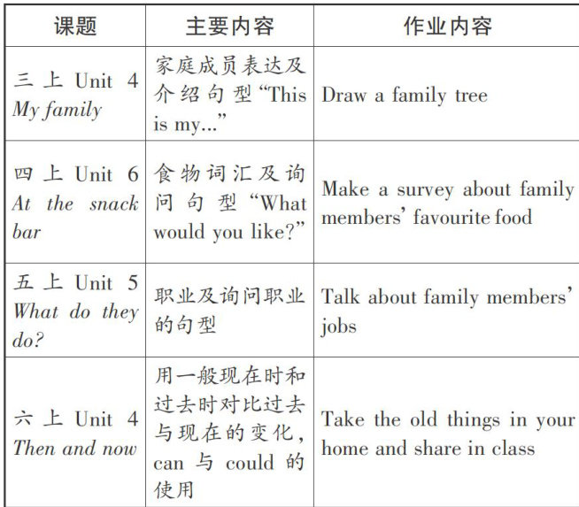 实践性作业是指学生通过实际操作、亲身体验等方式完成的作业,具有跨学科性、综合性等特征,能有效引导学生综合运用各学科知识解决问题,促进核心素养发展。下文,笔者谈谈小学英语实践性作业的设计。 1.注重图文组合,激发学习兴趣 学生完成实践性作业的形式应具有多样性,不必拘泥于文字表达,可采用图文结合的形式,这一方面能激发学生兴趣,另一方面能引导学生综合运用各学科知识。如在译林版五上Unit3Ouran