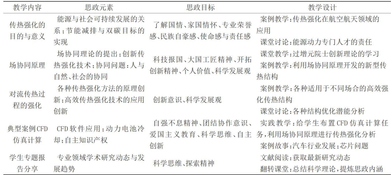 摘要:专业课程是研究生课程思政的基本载体,做好课程思政建设是每个高校教师必须完成的课题。结合能源动力类研究生专业课的特点,通过阐述传热强化原理及技术课程进行思政建设的意义,从课程思政建设的思路与目标、思政元素挖掘、教学设计和教学效果评价等角度进行实践与探讨,以期探索研究生专业课课程思政建设的新思路。