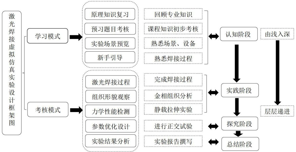 摘要:以一流课程建设为导向,针对激光焊接过程中存在的高危性、高成本、高污染问题,构建“两模式、四阶段”的激光焊接虚拟仿真实验系统,通过三维虚拟仿真技术呈现激光焊接、组织形貌和力学性能测试过程,使学生可以在直观、逼真的场景中进行实验,达到真实的实验教学效果,培养学生解决实际工程问题的能力和工程创新能力,同时为提升焊接专业人才培养质量,建设培养复合型、创新型人才的一流本科课程提供可应用案例。