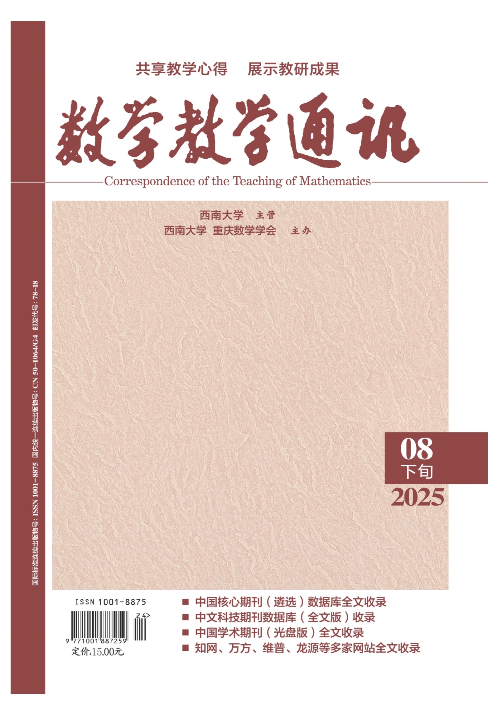 [摘要]高考数学试题的质量决定着人才选拔的质量.文章构建"知识内容—SOLO思维层次一核心素养”三维试题分析框架,对2024—2025年新高考Ⅱ卷中函数模块试题质量展开研究.研究结果表明:试题整体符合基础性与综合性的考查要求,但存在知识覆盖不全面、高阶思维考查波动及素养覆盖失衡等问题.据此,提出试题命制建议:优化知识覆盖,强化应用情境;进阶思维层级,增强开放创新;深化素养融合,聚焦建模与抽象.
