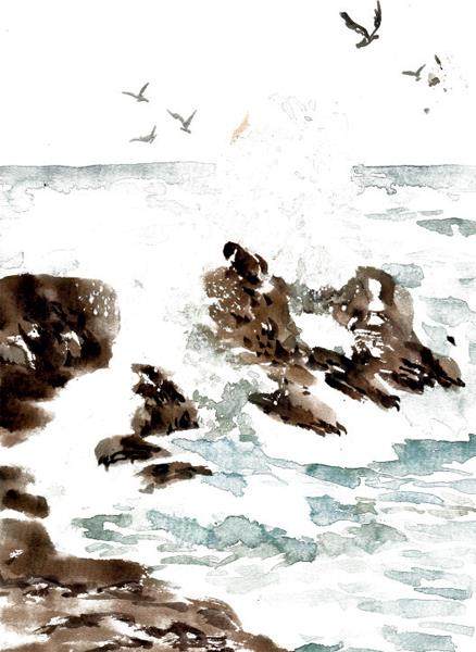 你从未去过那一片大海,从陆地出发,要经过万千片田园山野,穿过一条条隧道。幸福而温暖的铁轨,背负命运,一直延伸到春天的海边。 我给你描述过大海,但当你真正直面它的时候,你才能感觉到它来自内部的庞大力量:无尽的波浪如未知的生活,蔚蓝的内心如炽热的铁。 每个人都有自己的大海。 你想象的玻璃瓶中装着大海:勇敢是那礁石,坚韧是那礁石,思索是那礁石,爱也是那礁石。鱼儿成群结队,蔚蓝无尽,生死无穷。